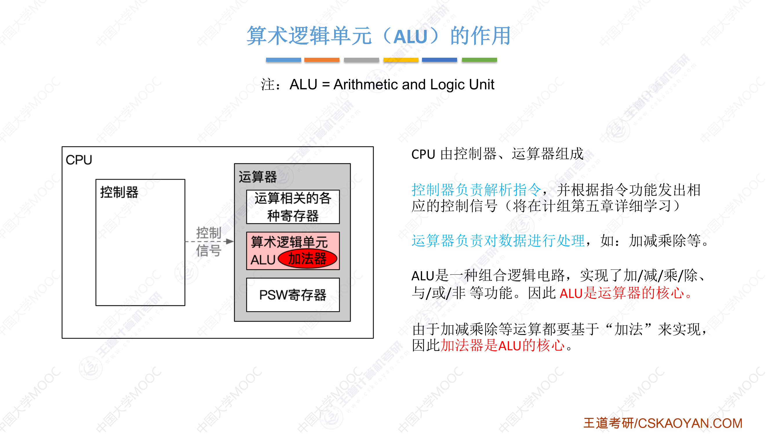 CU:控制单元,分析指令,给出控制信号 -