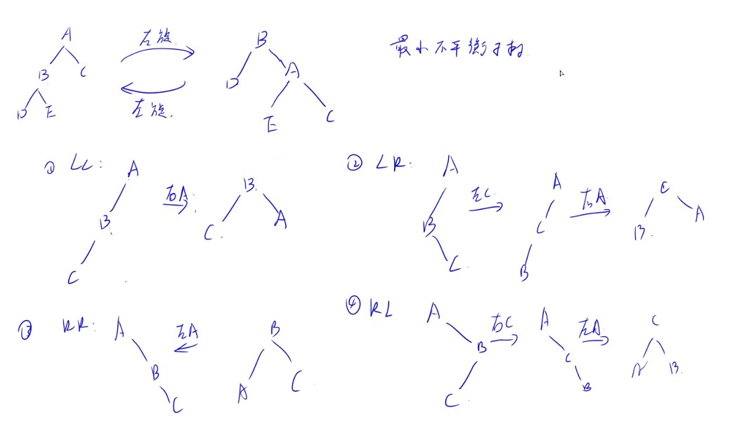 - 比如给出一个关键字序列,从一个空的二叉树开始插入这些关键字,然后画出插入以后的平衡二叉树的形态,同时给出这个平衡二叉树的数据结构定义