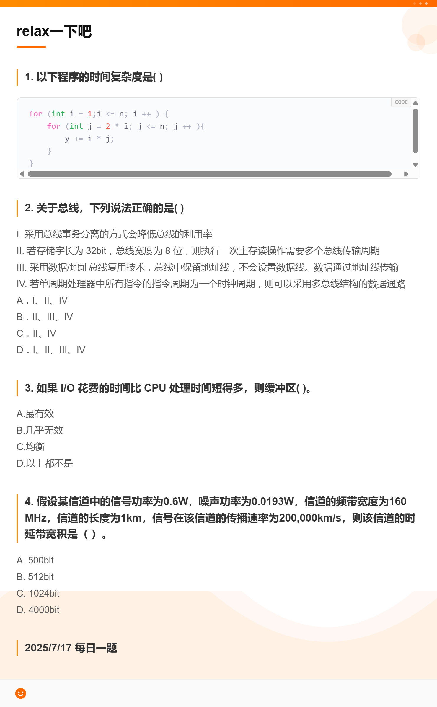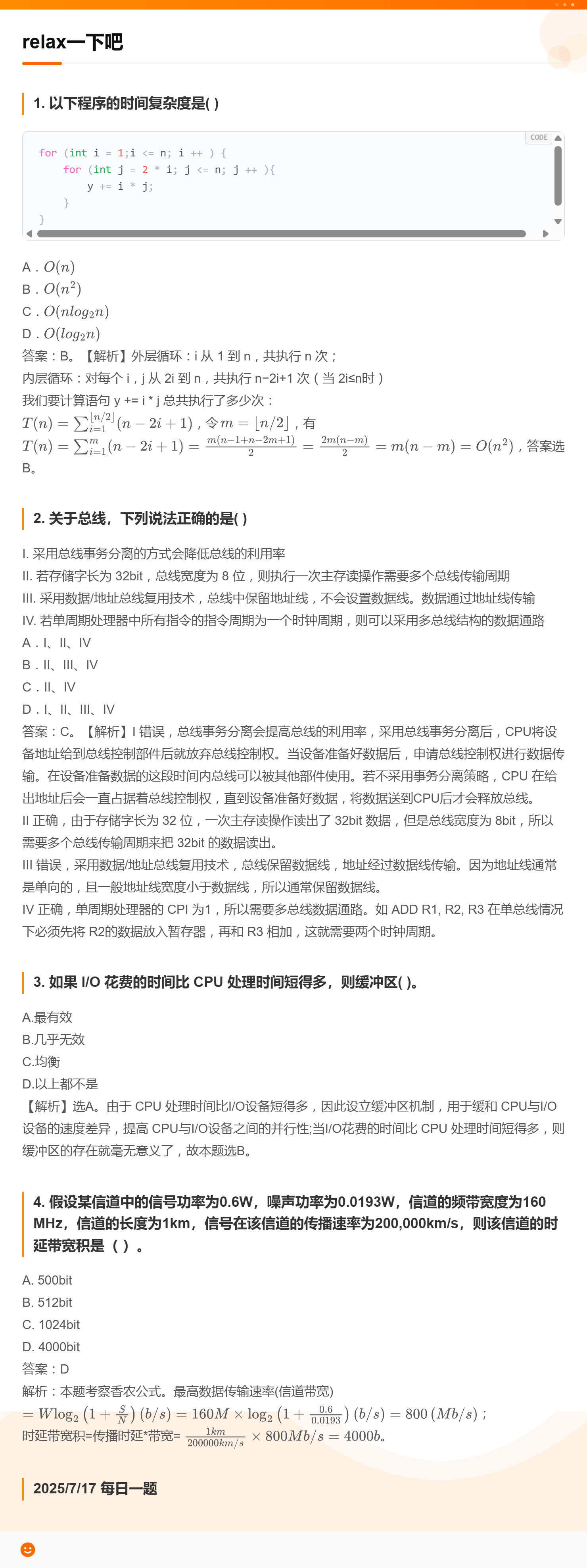 7.17 时间复杂度和总线和I/O缓冲区