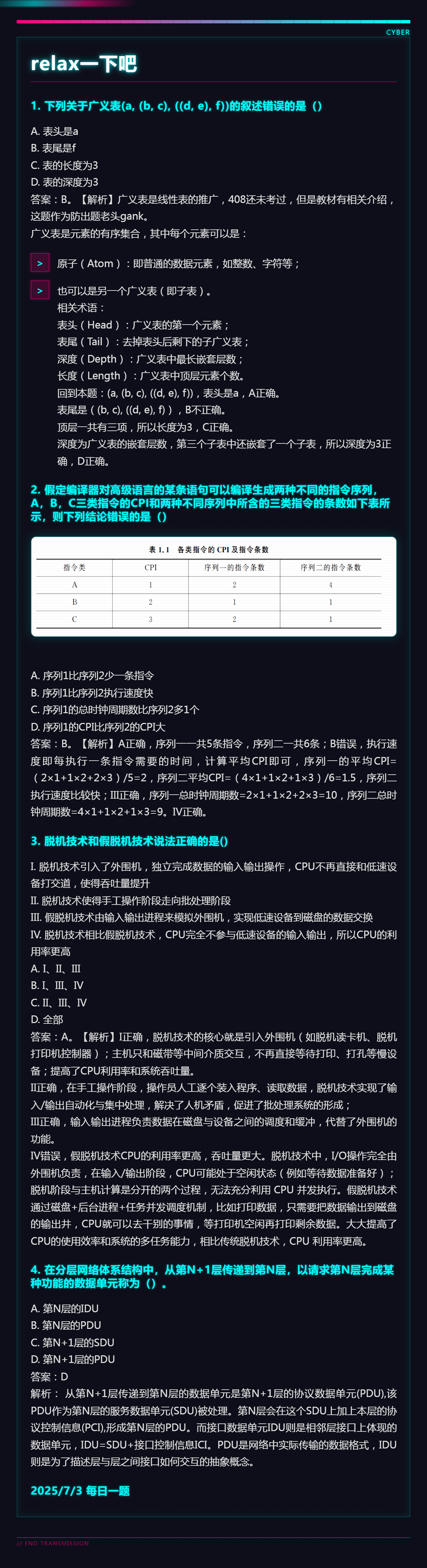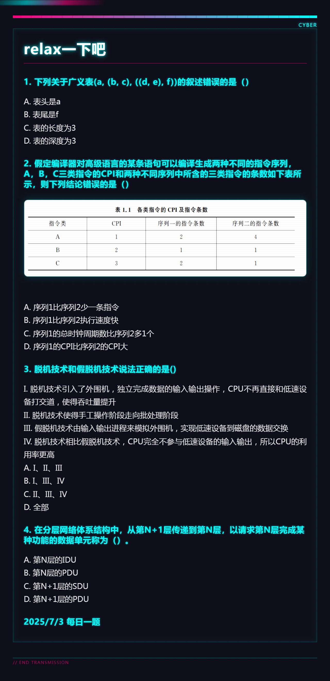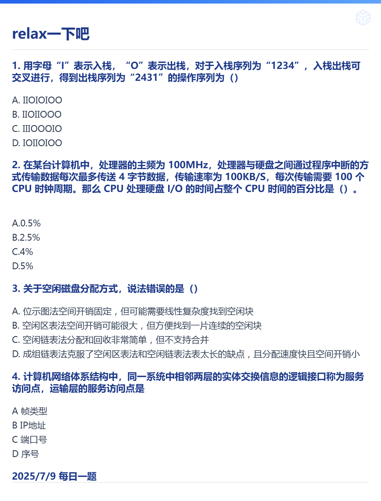 7.5 数据结构的基本概念和中央处理器和死锁和计算机网络体系结构