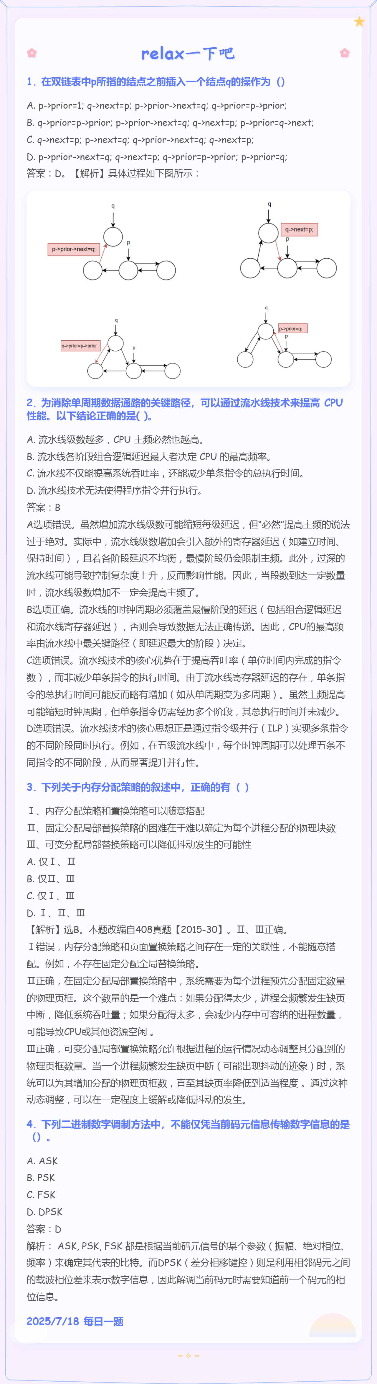 7.18 双链表操作和流水线和内存分配策略和通信基础