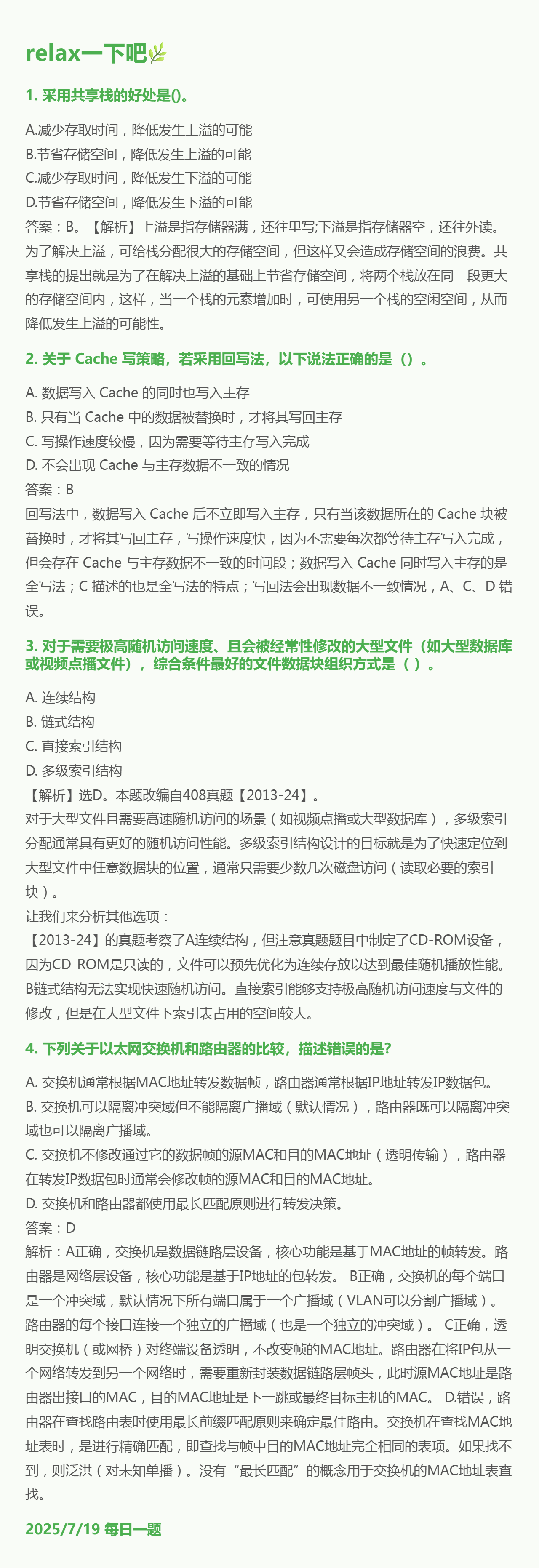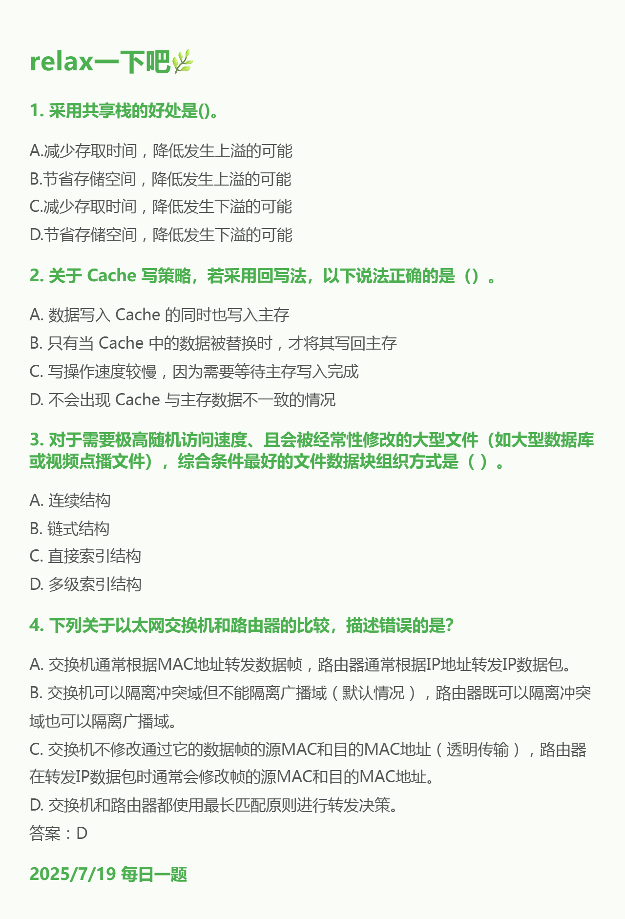 7.19 栈和Cache和文件的物理结构和数据链路层网络层设备