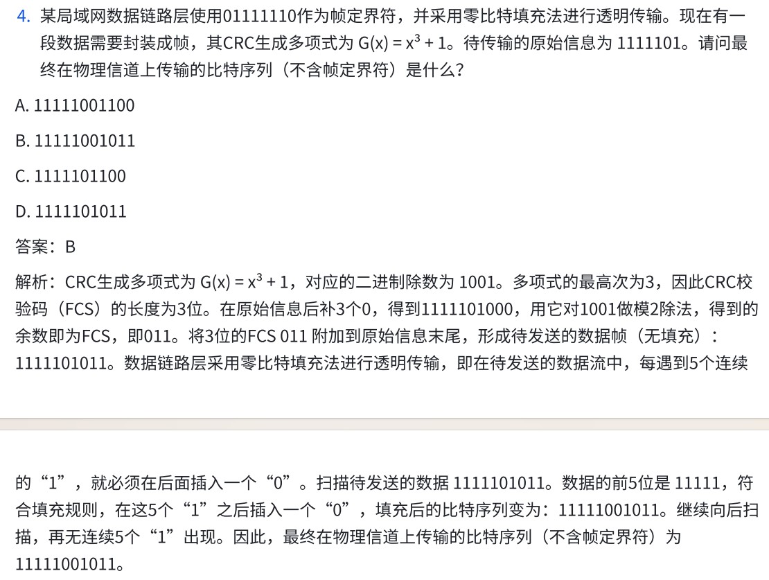 考点:数据链路层——组帧零比特填充法和差错控制CRC