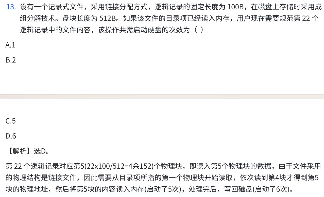 考点:文件的物理结构——IO次数