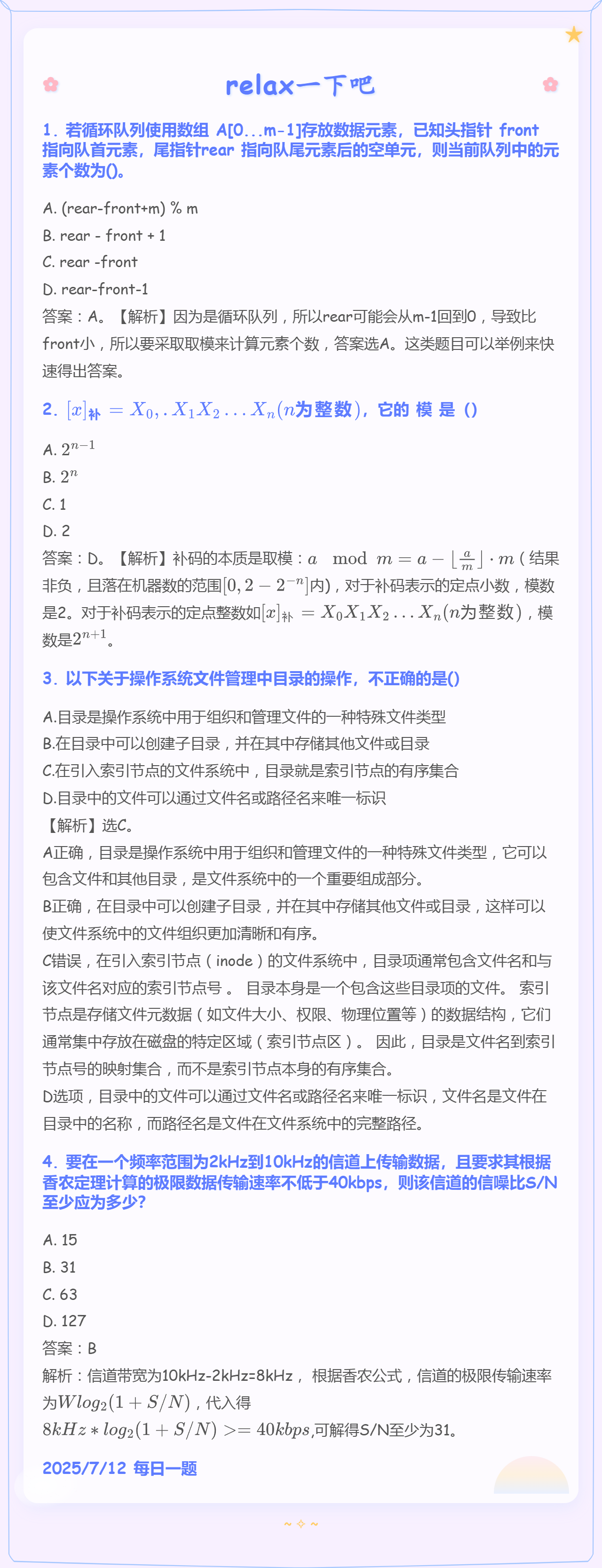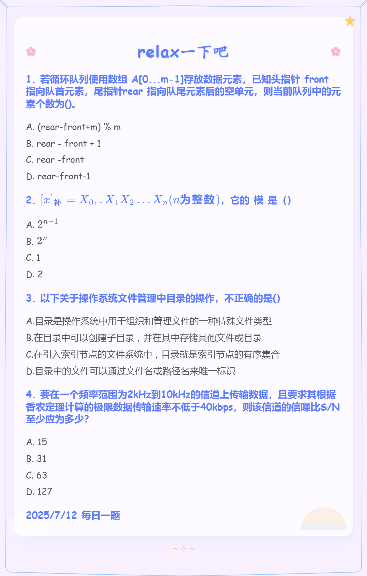 7.12 队列和补码和目录和通信基础