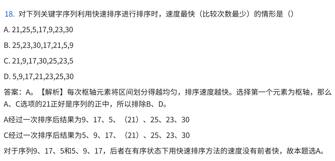 考点:快速排序的比较次数