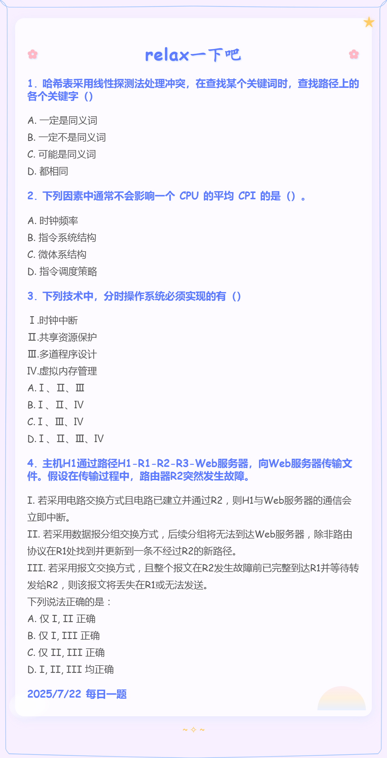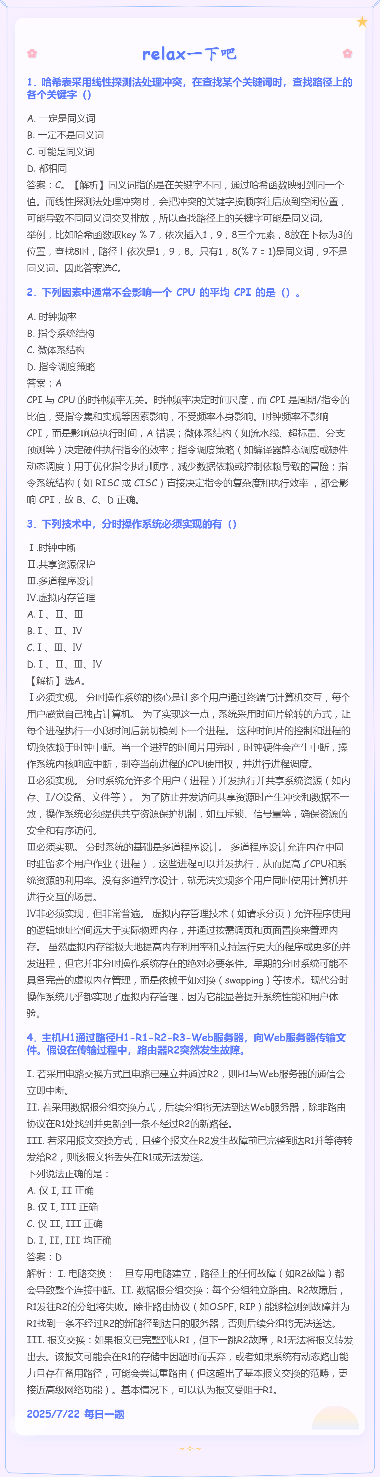 第一题答案写错,选C,正确