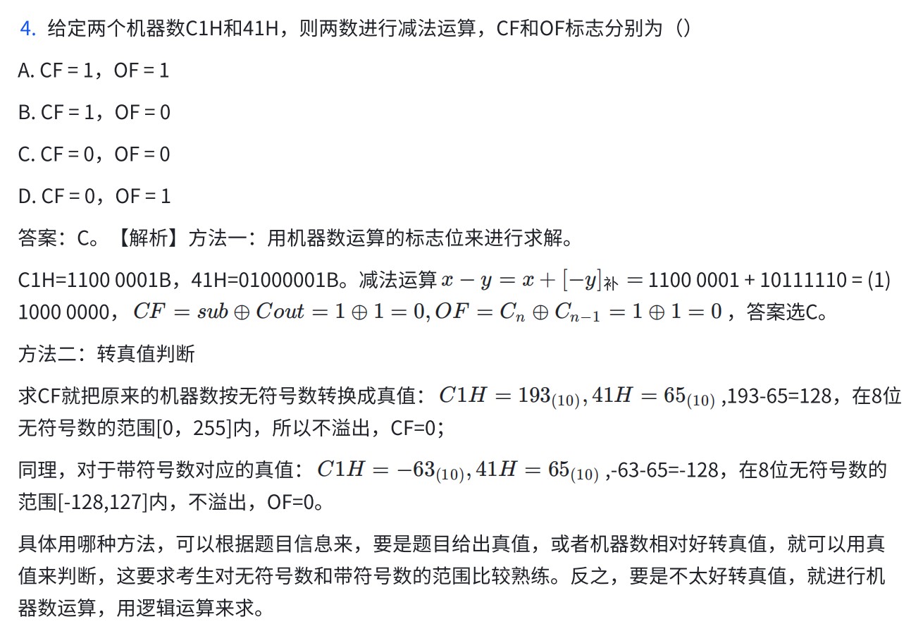 - 补码的本质是取模,对于补码表示的定点小数,模数是2,对于补码表示的定点小数,模数是2^n+1
