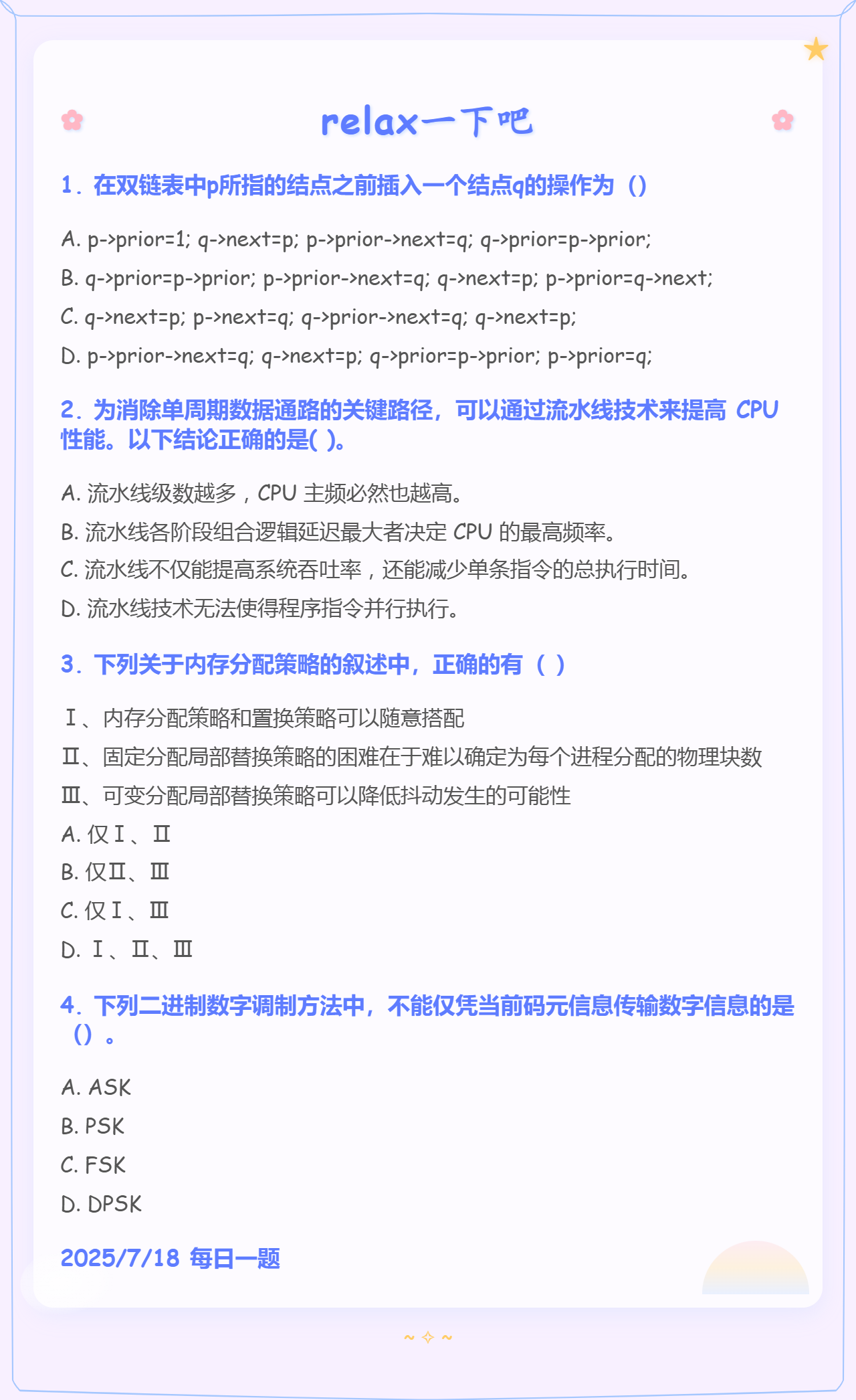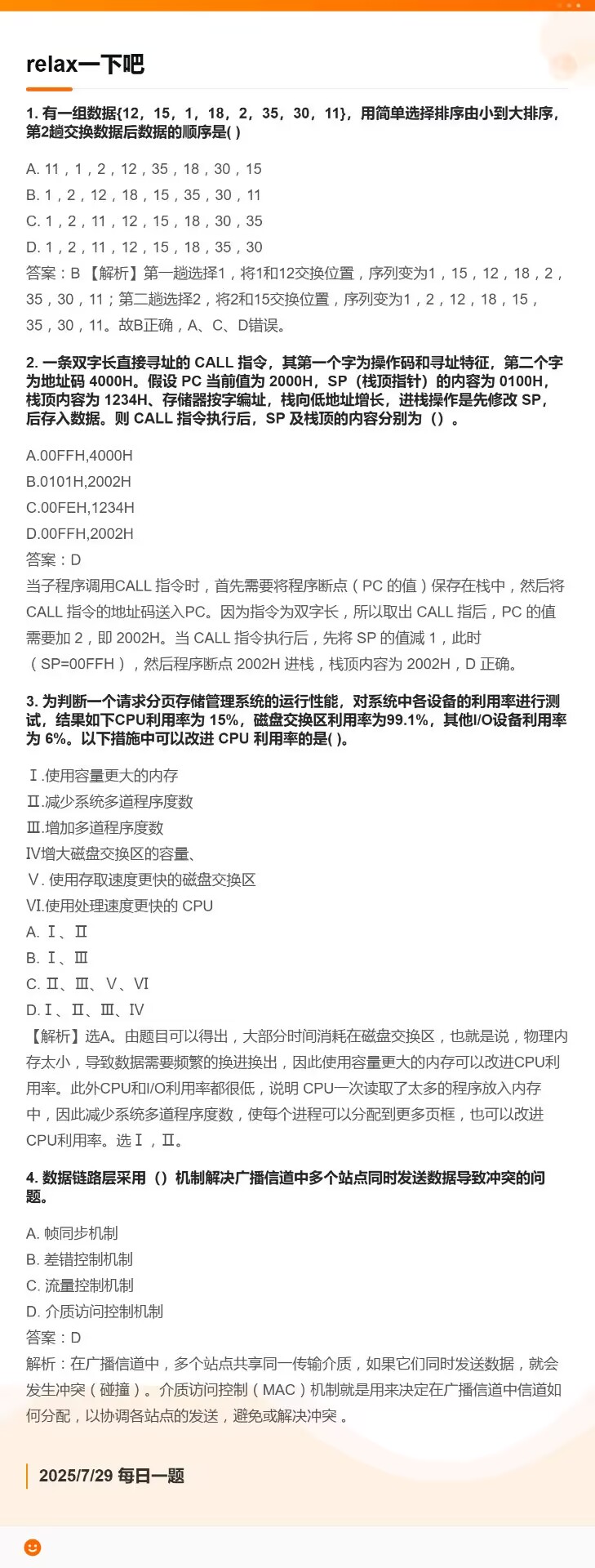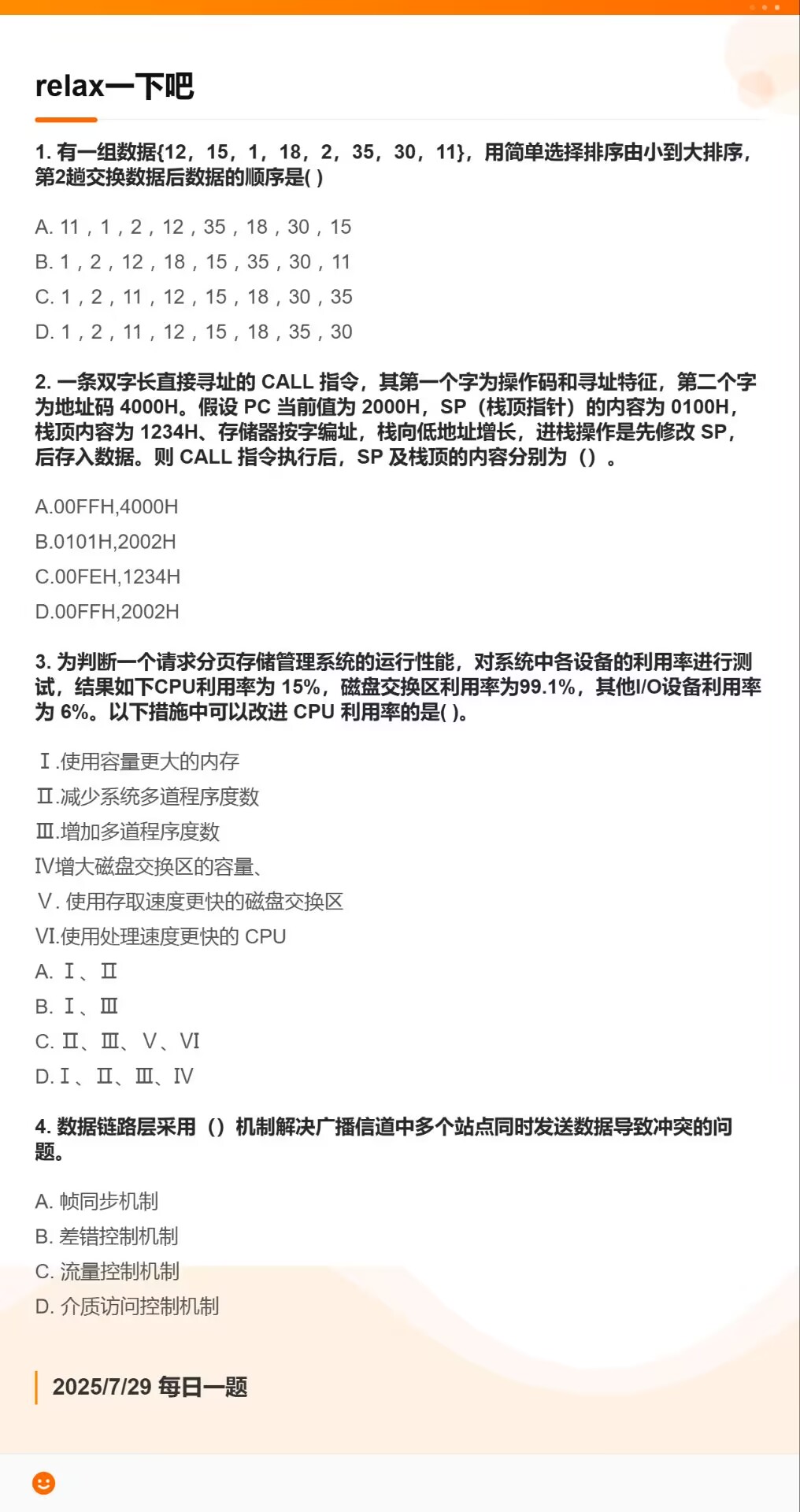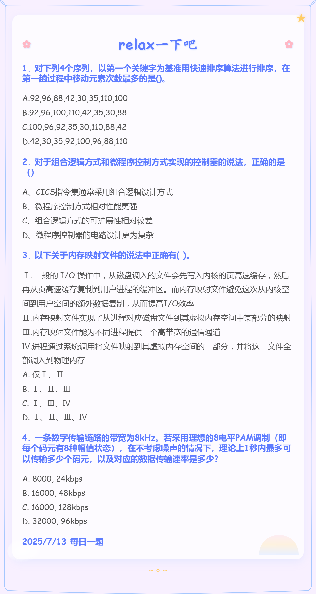 7.20 快速排序和SRAM和分页存储管理方式和通信基础