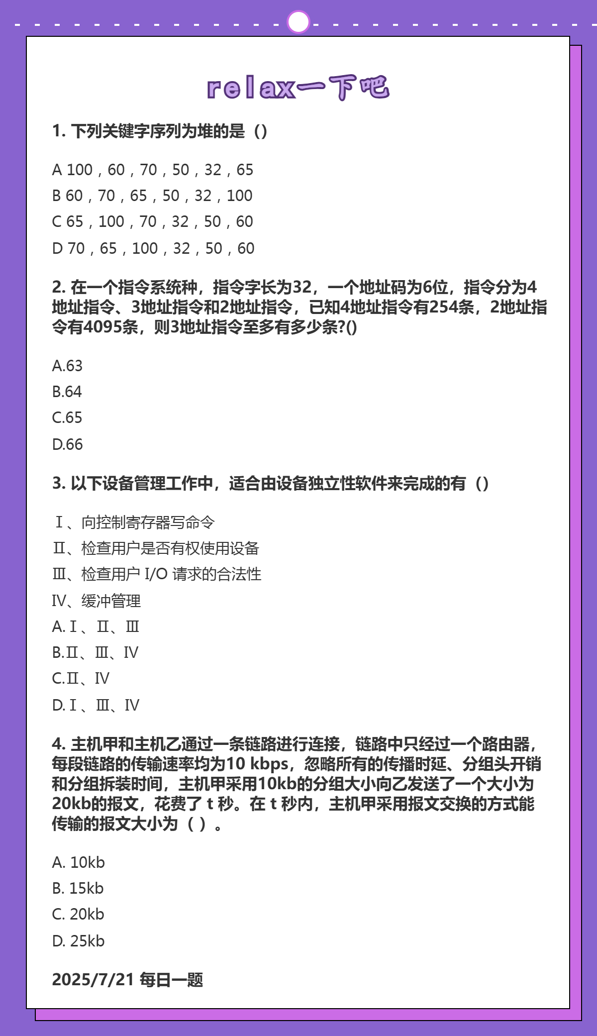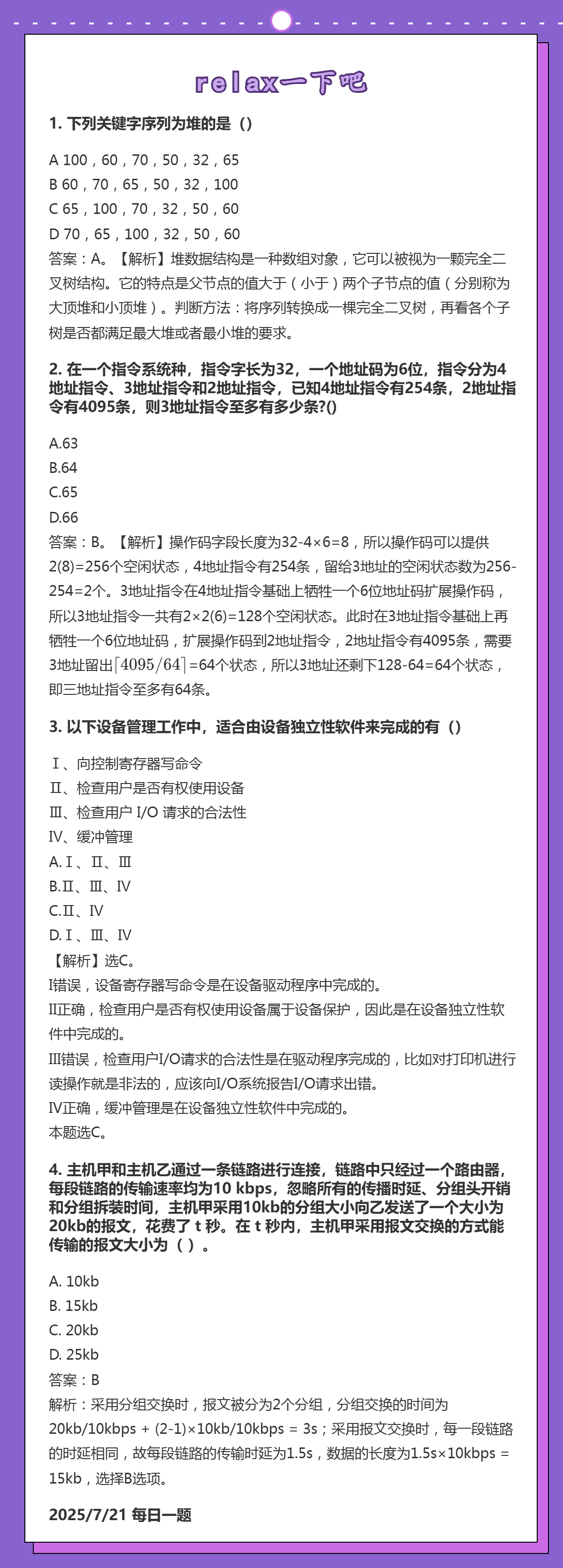 7.21 堆排序和扩展操作码指令格式和I/O软件层次结构和三种交换方式