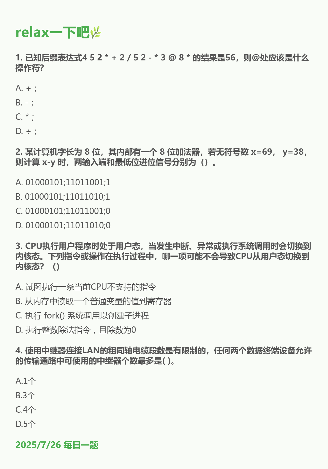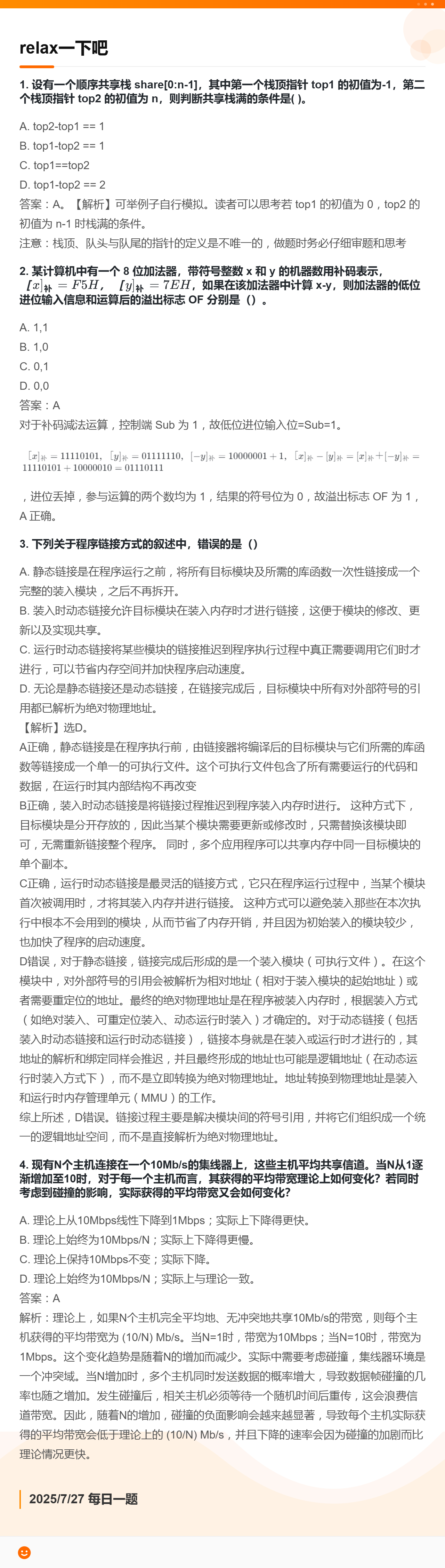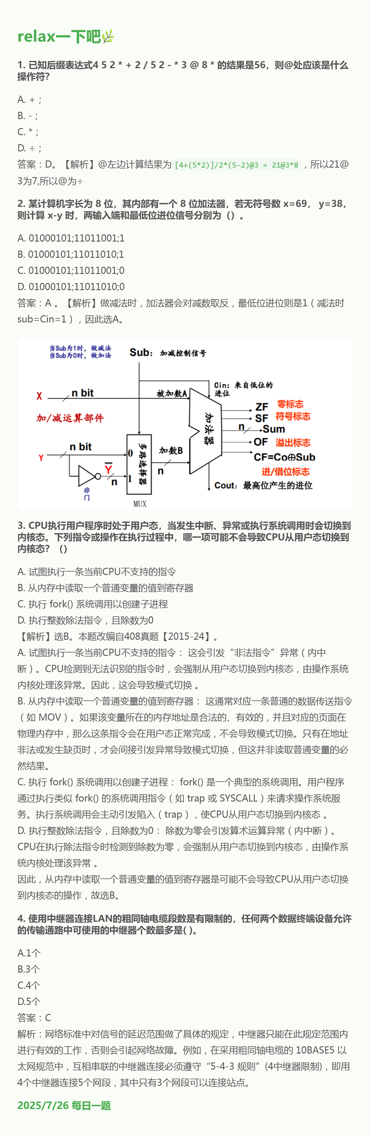 7.26 后缀表达式和数据的运算电路和操作系统状态和物理层设备