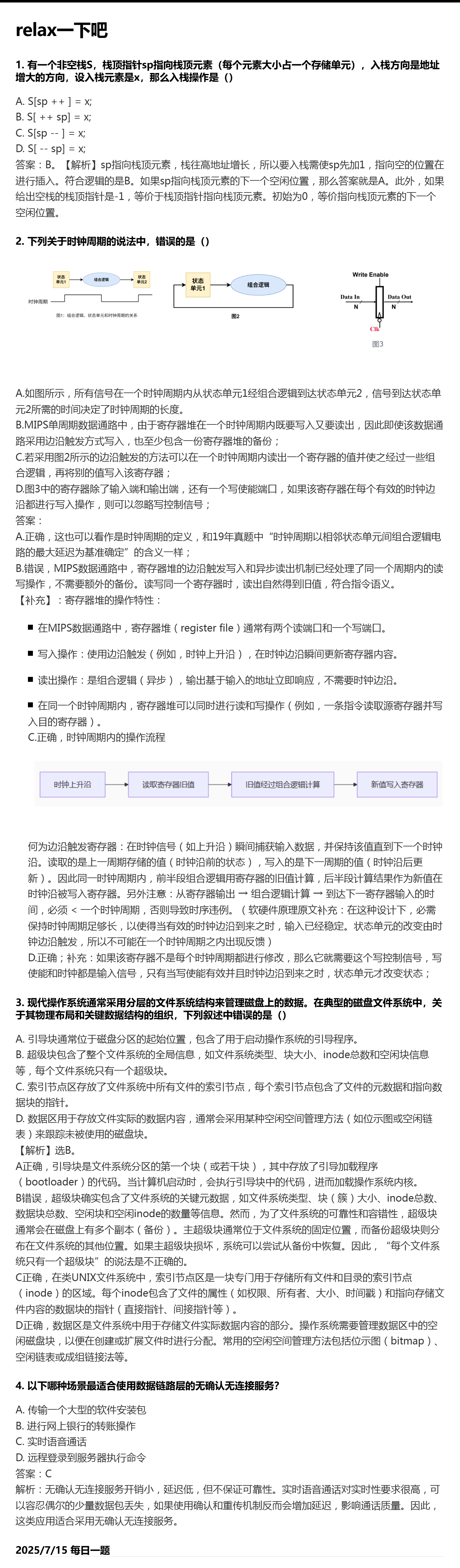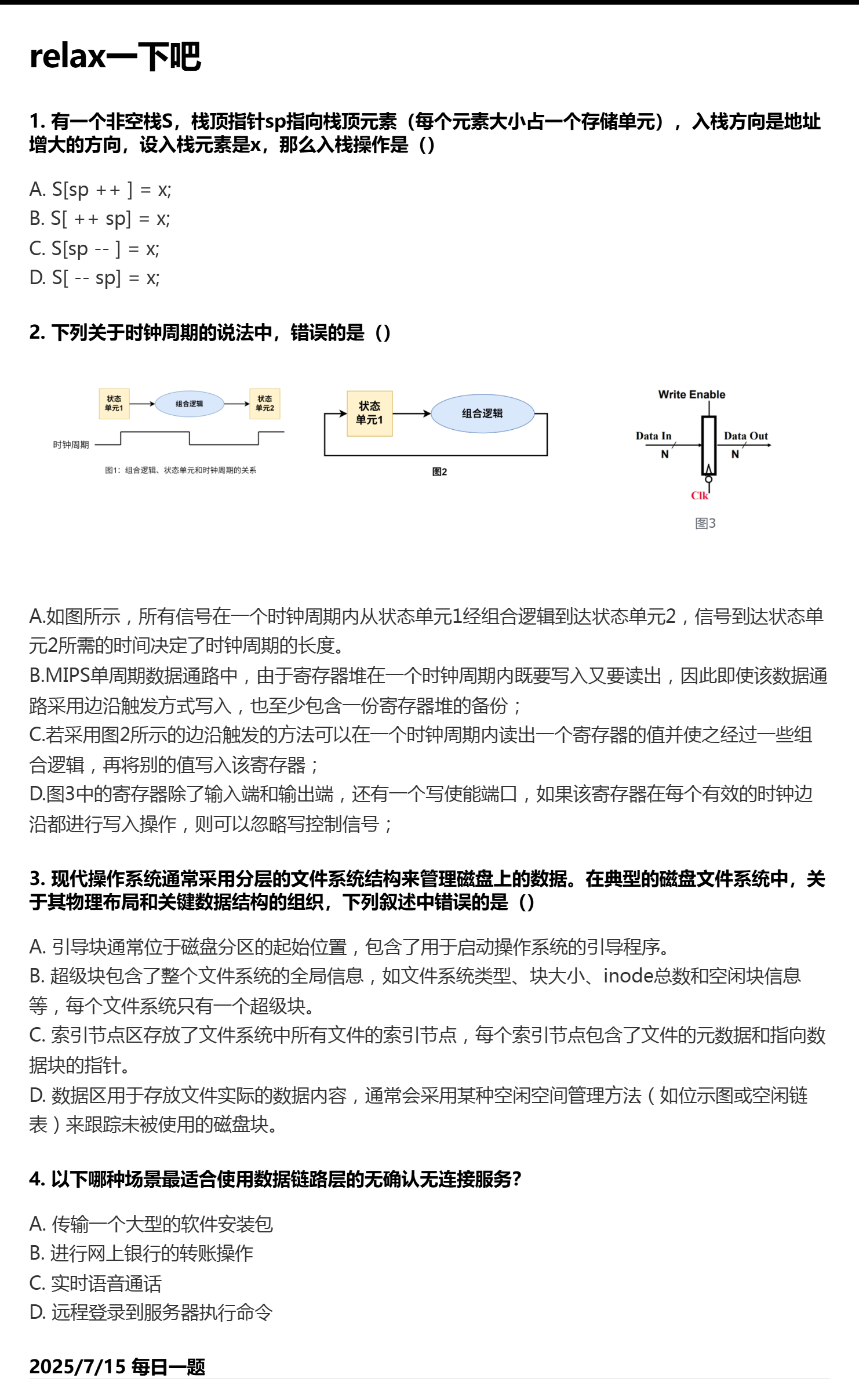 7.15 栈和指令周期和文件系统布局和数据链路层