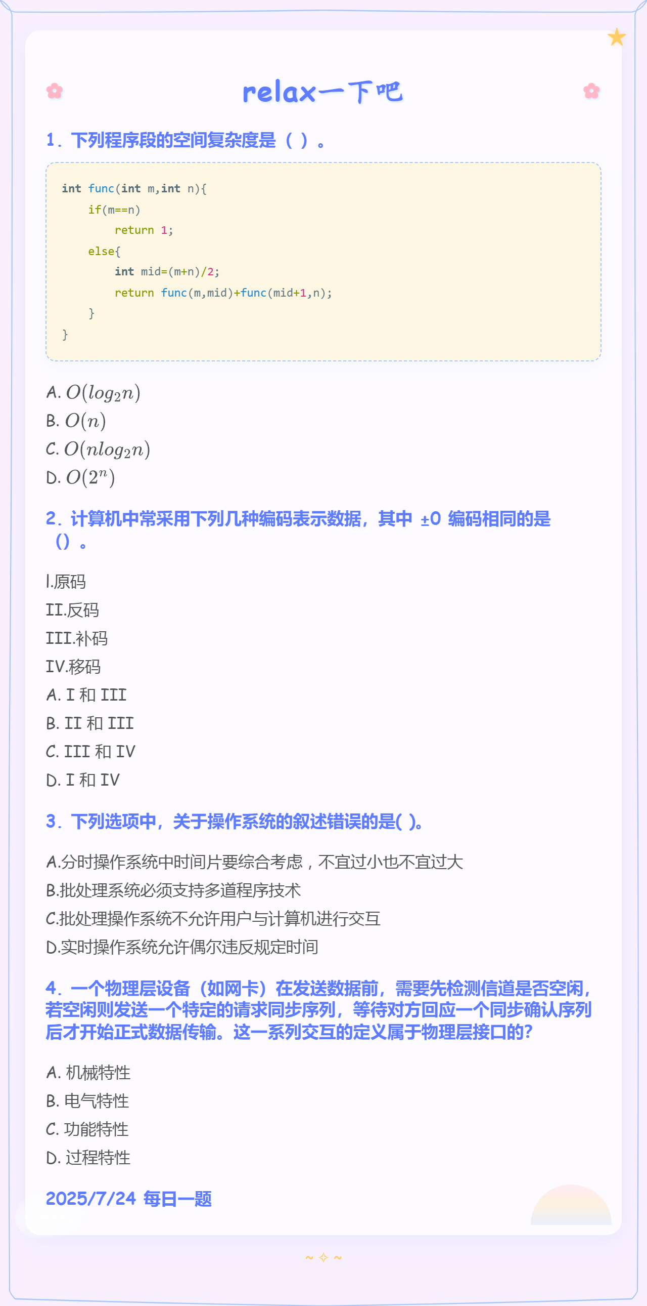 7.24 空间复杂度和数据的表示和操作系统概述和物理层