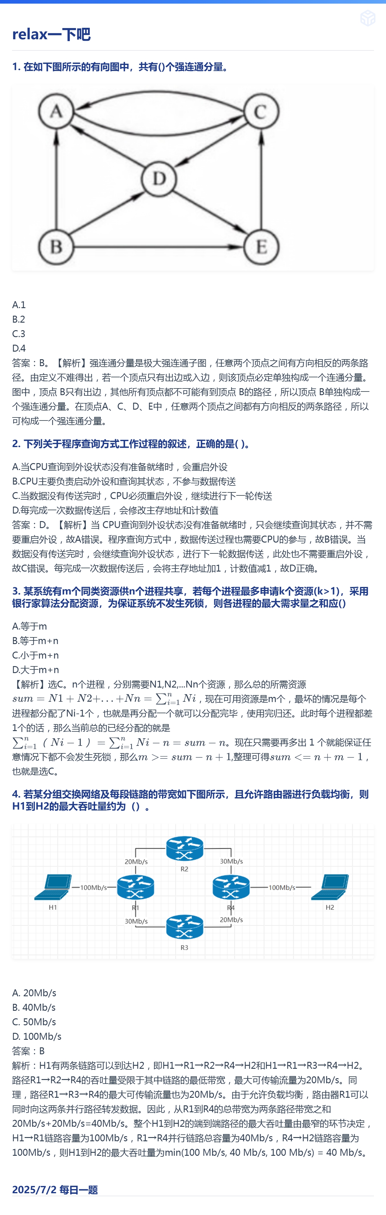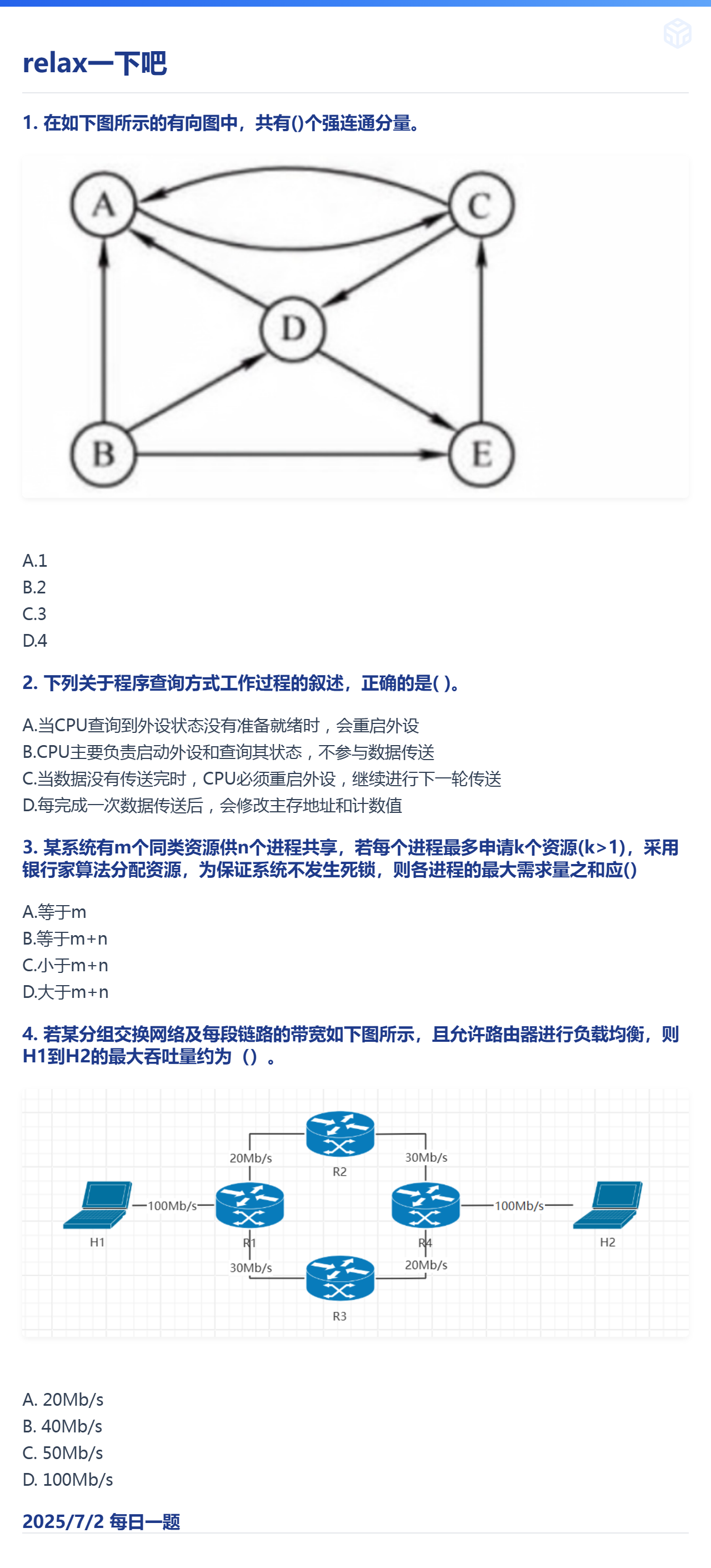 7.2 图的基本概念和I/O方式和死锁和计算机网络的性能指标