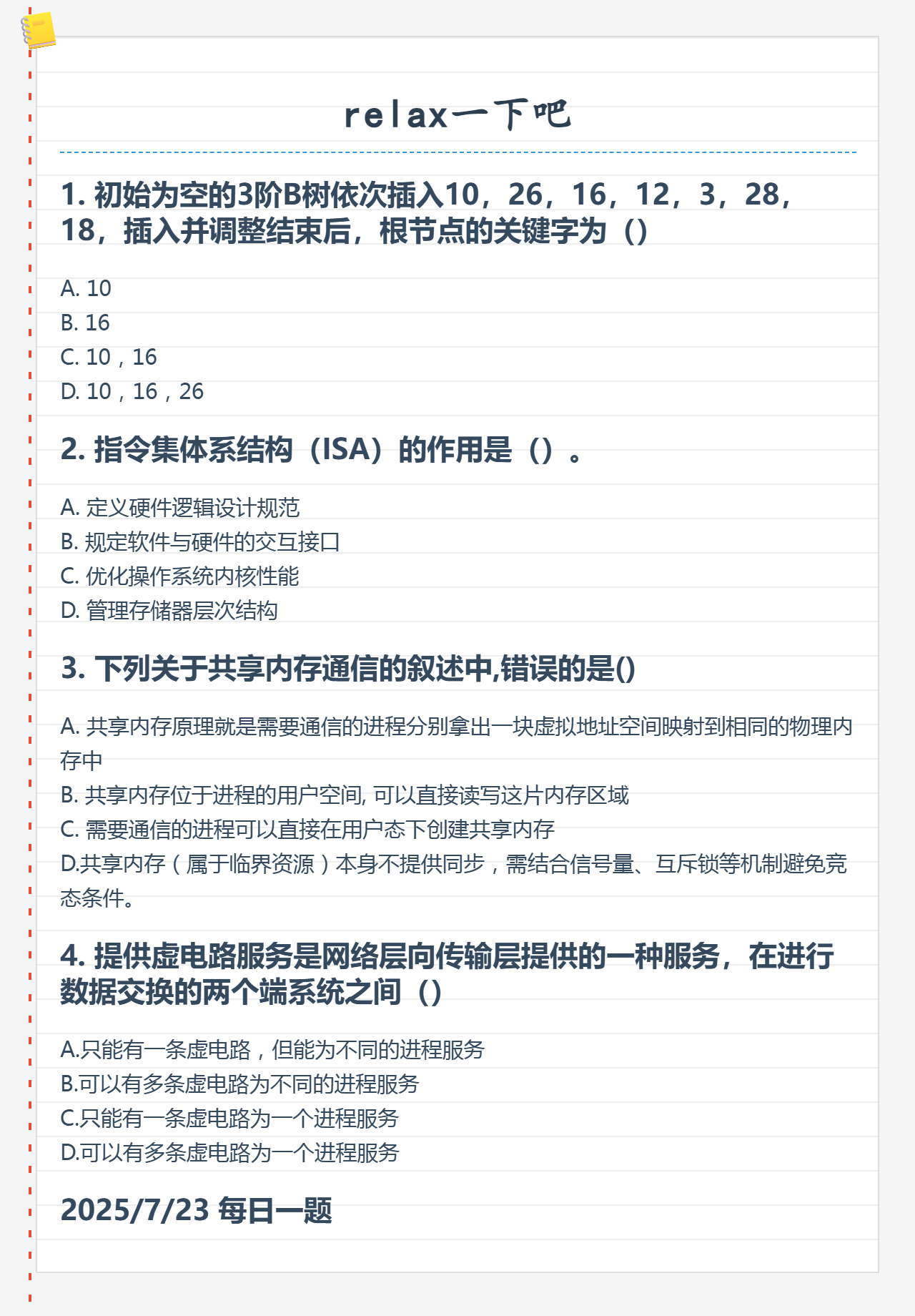 7.23 B树和指令系统和共享内存通信和网络层