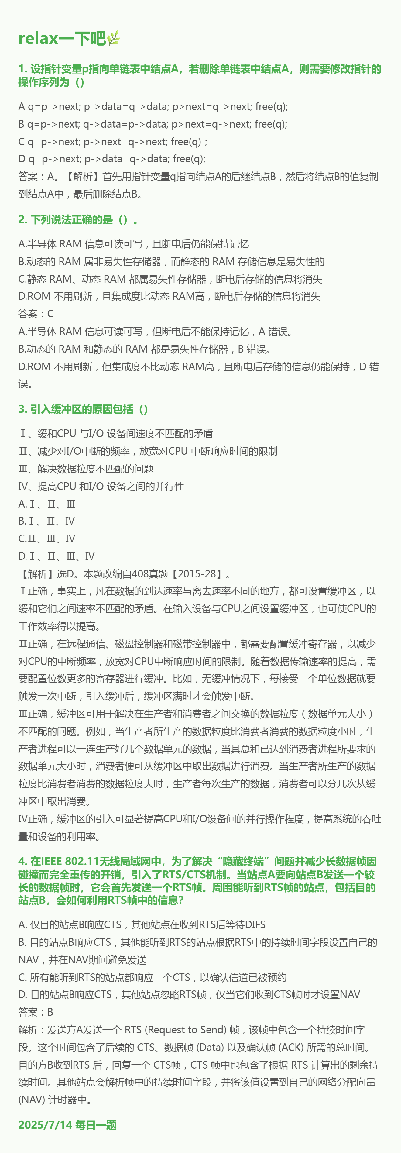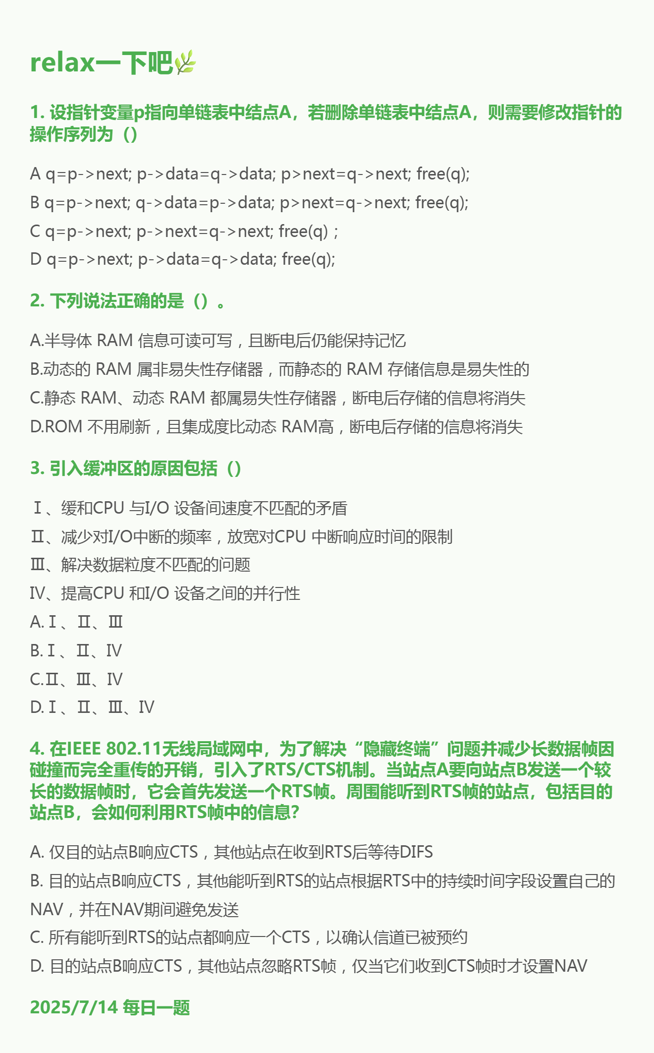 7.14 单链表和主存储器和I/O和CSMA/CA