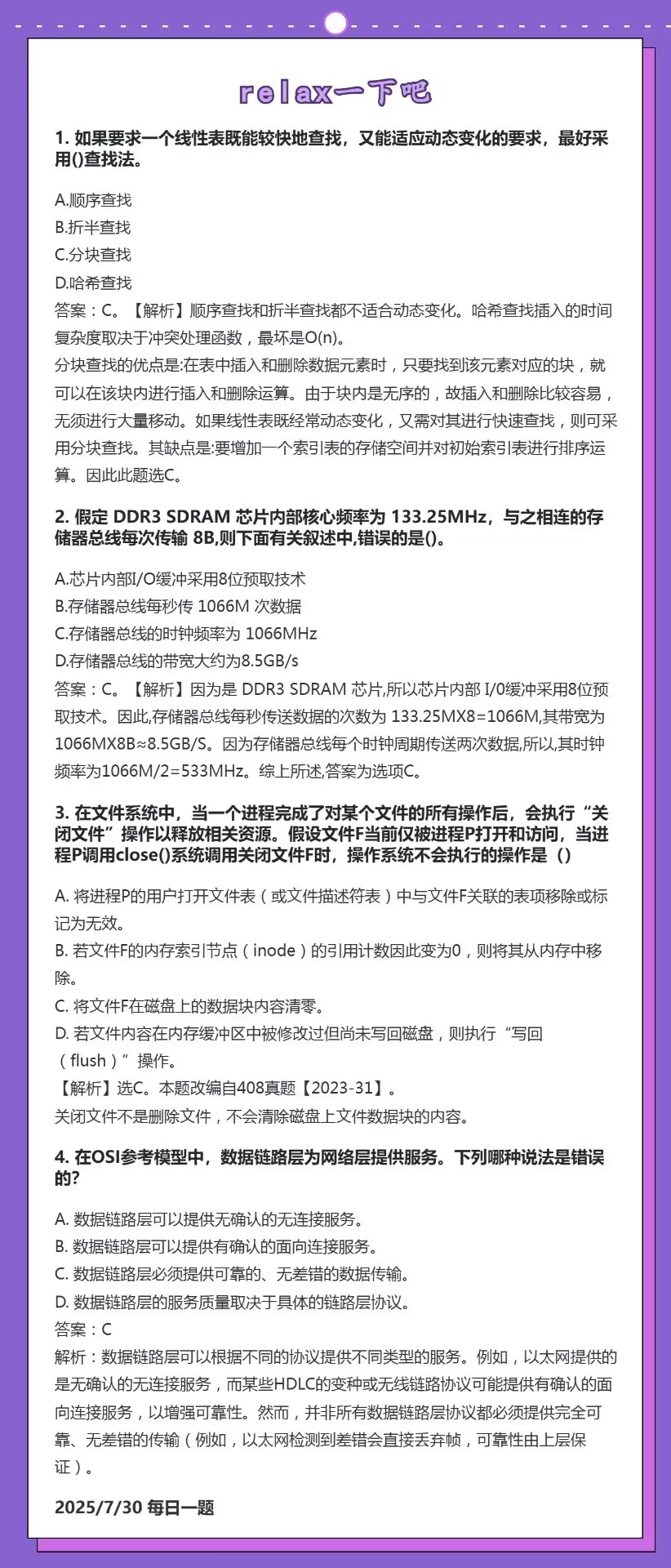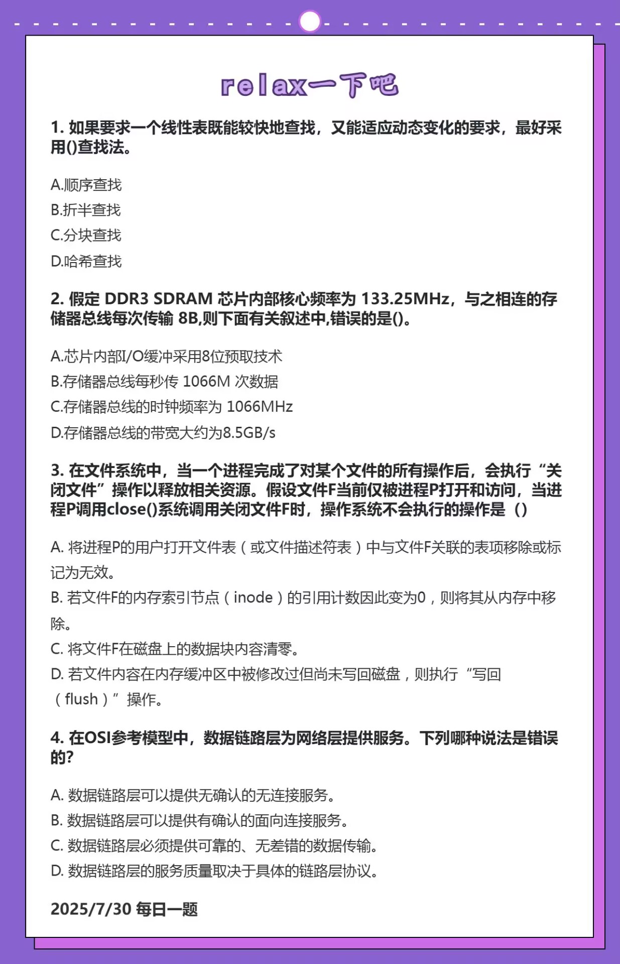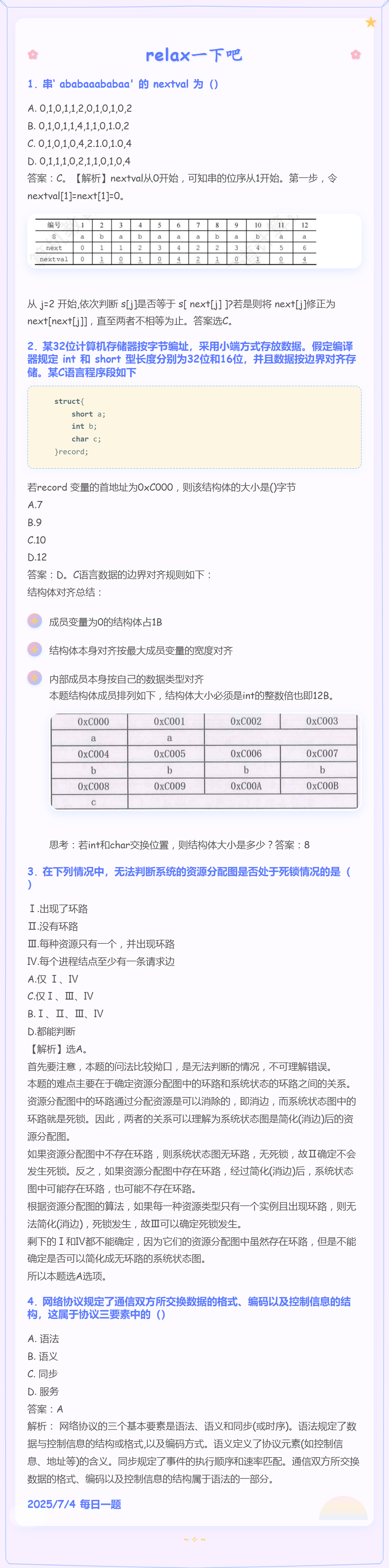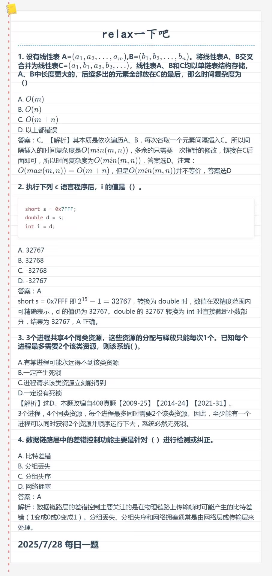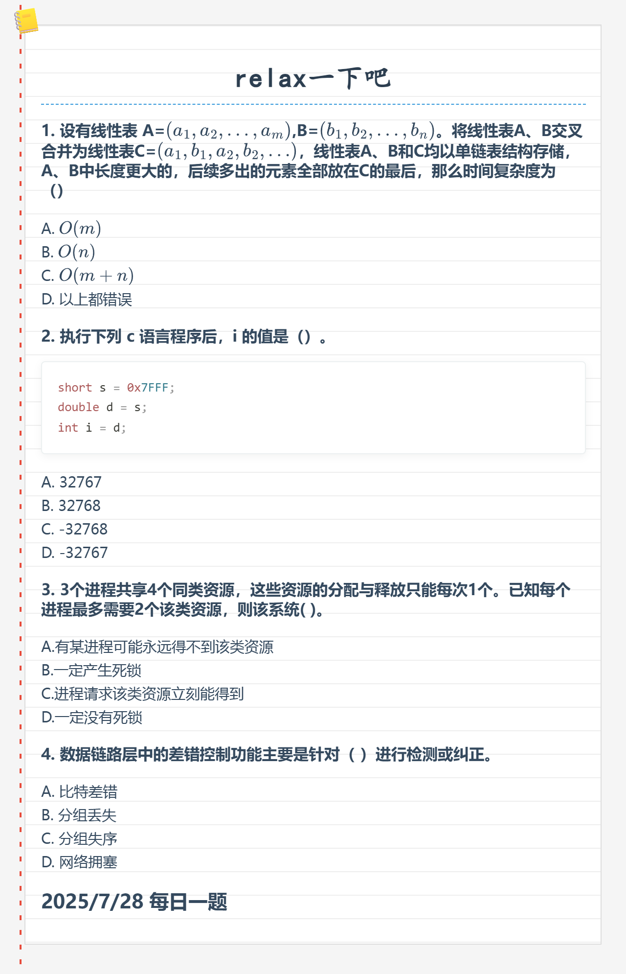7.28 线性表和数据的表示和进程死锁和数据链路层差错控制