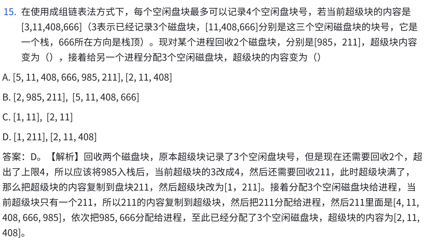 考点:文件存储空间管理——空闲磁盘块的管理方法