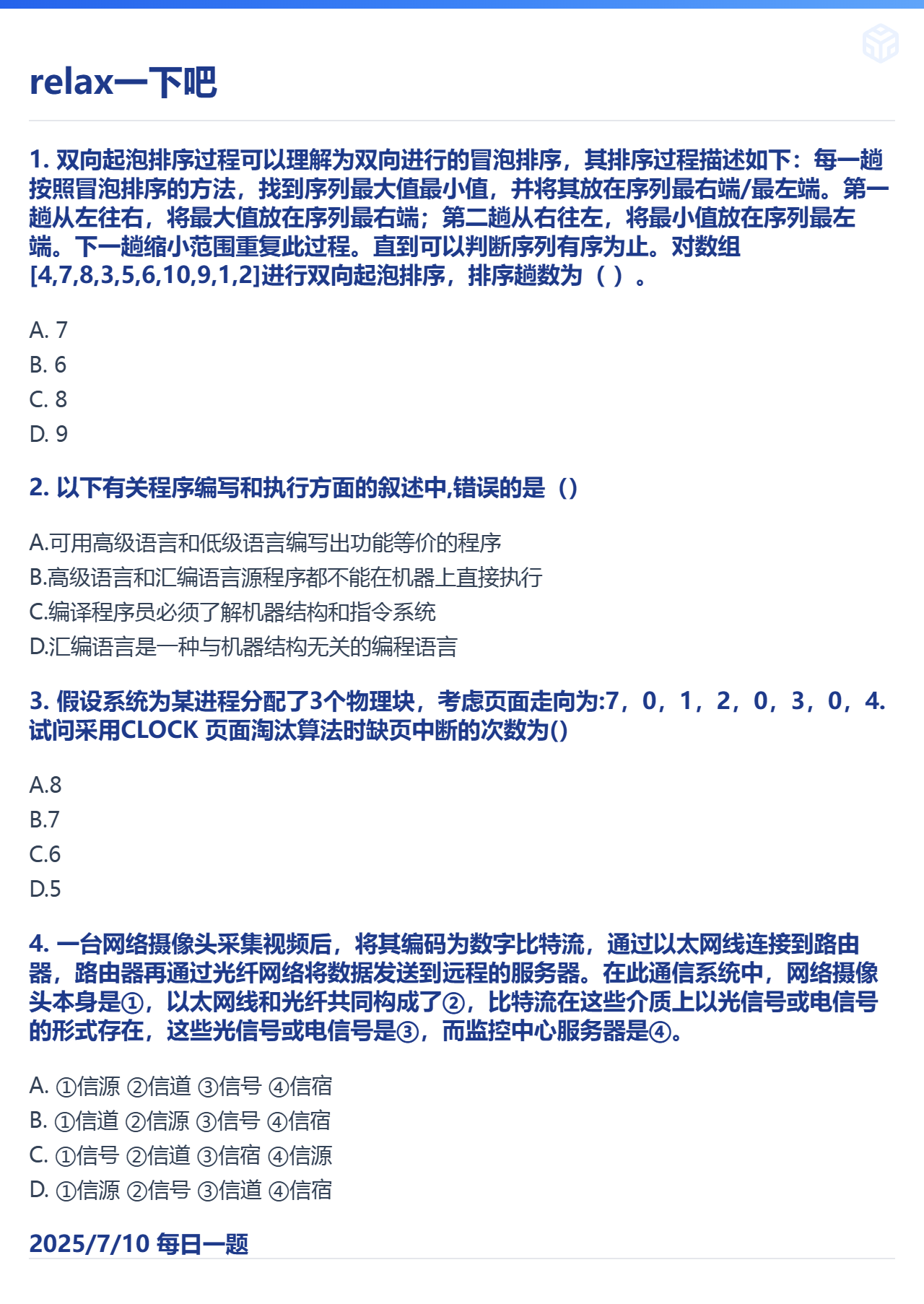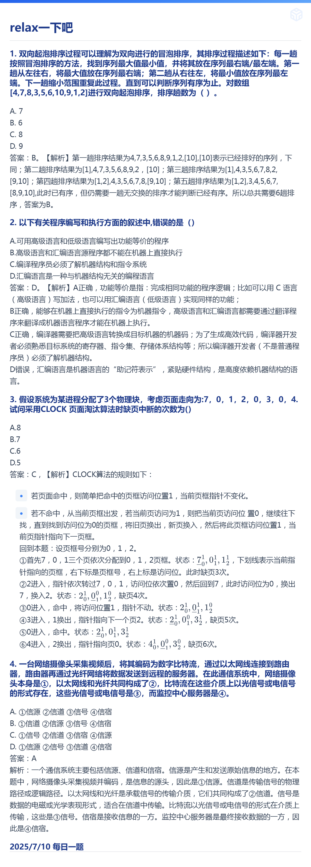 7.10 冒泡排序和计算机软件和页面置换算法和通信基础