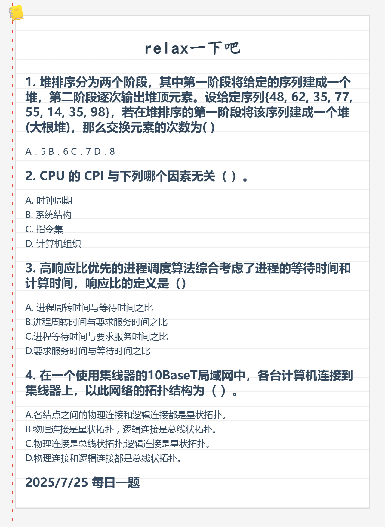 7.25 堆排序和CPU性能指标和进程调度算法和计算机网络的分类